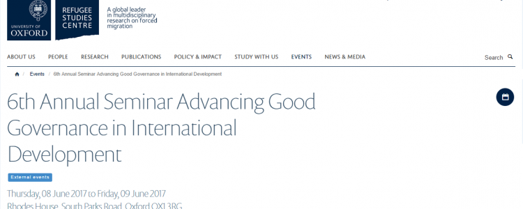 Our Development Coordinator participated in a panel on Risks and Challenges in Migration contexts: What will the new governance model need to address? And How? What will it look like? This was as part of the 6th Annual Seminar on Advancing Good Governance in International Development, held at Rhodes House, Oxford University on the 8th of June.