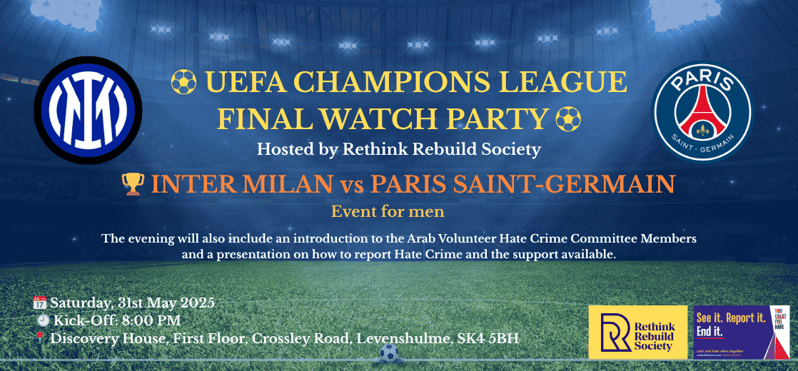 Rethink Rebuild Society is hosting a watch party for the The UEFA Champions League Final!