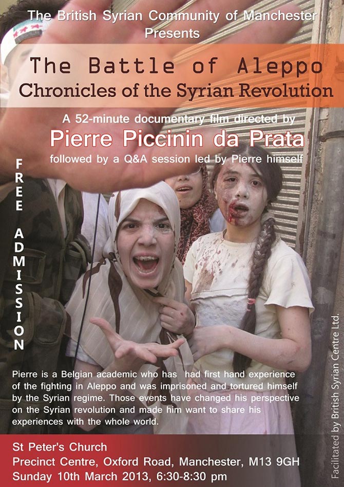 The Syrian Community of Manchester invites you to a 52-minute documentary film directed by Pierre Piccinin de Prata followed by a Q&A session led by Pierre himself
