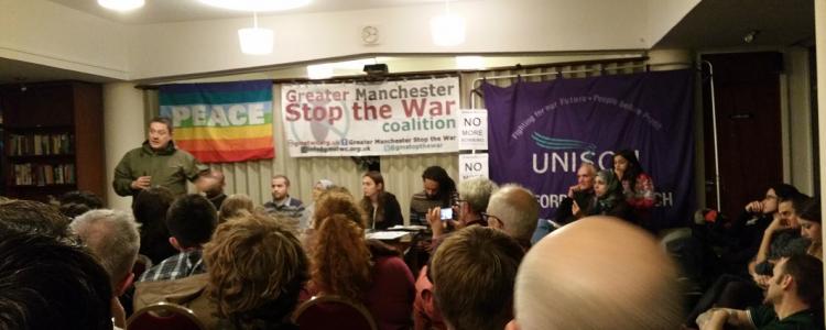 Stop the War held an event on 9 December on Syria at Manchester University. We attended alongside members of the Syrian community and we relayed our concerns regarding the developments in the country. Particularly, we were concerned that out of a group of four panellists on Syria, only one of them mentioned the Assad regime.